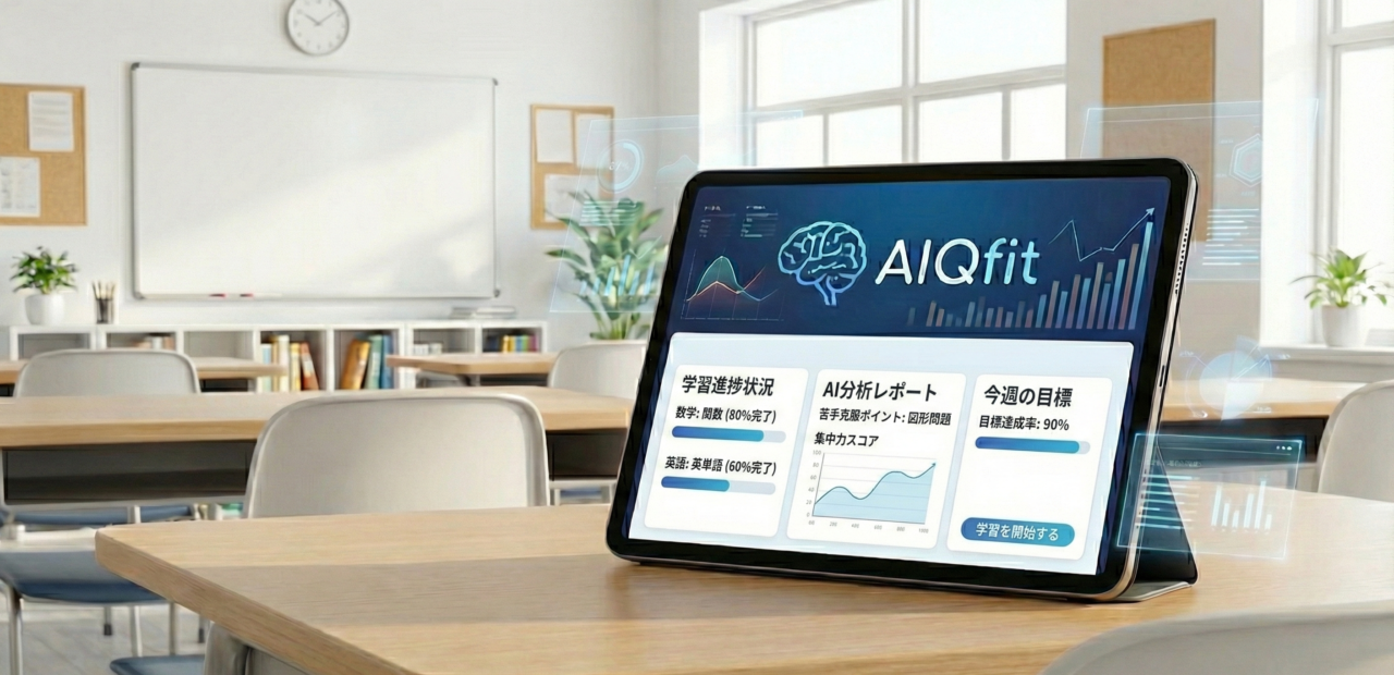 AIQfitは、教科書レベルの学習を、生徒一人ひとりの特性に合わせて最適化する次世代のAI教材パッケージです。